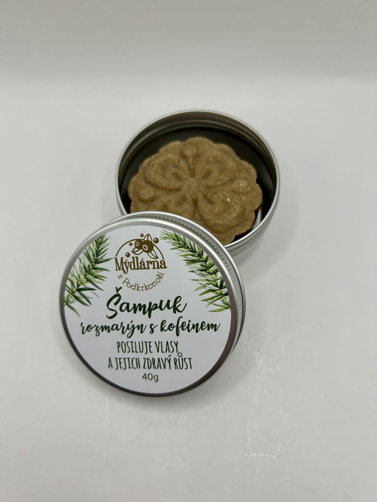 Šampuk s rozmarýnem a kofeinem - 40g s dózou posiluje vlasy a jejich zdravý růst