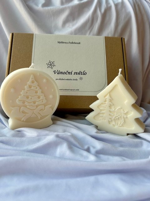 Dárková sada dvou vánočních svíček ze 100% sójového vosku. Ručně odlévané, s jemnými motivy Vánoc, zabalené v krabičce - ideální jako malý, hřejivý dárek pro vaše blízké. Více informací